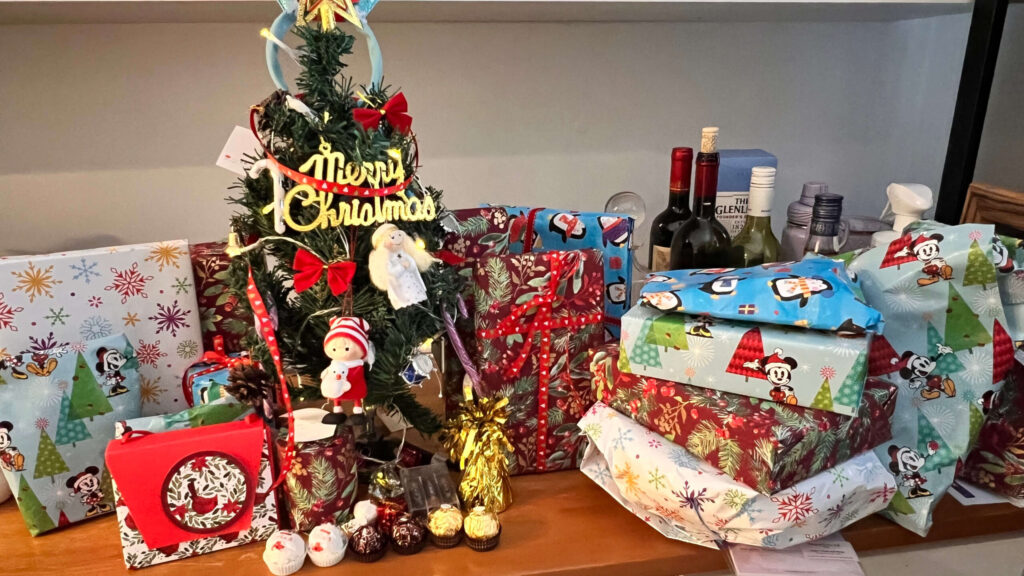 私の家はプレゼント交換などはせず、チキン(KFC)とホールケーキを食べるくらいなので、
